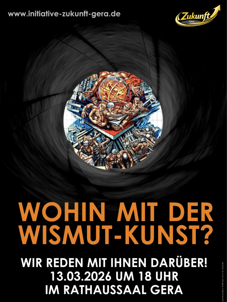 Als ein erstes Projekt organisiert die Initiative am 13. März 2026 mit Beginn 18.00 Uhr im Rathaussaal eine Podiumsdiskussion. Unter dem Titel „Wohin mit der Wismut-Kunst?“ sollen kunst- und kulturwissenschaftliche Experten gehört und das Thema mit dem Publikum diskutiert werden. Intention der „Initiative Zukunft Gera“ ist es, das künftige Museumskonzept um das Kapitel Wismut zu ergänzen und so die Wismut-Kunstsammlung, die nach einem ständigen Ausstellungsort sucht, nach Gera zu holen.